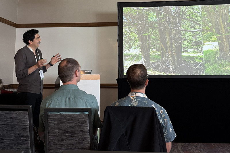 Por otro lado, Pablo Bravo Monasterio, estudiante de Doctorado en Ecosistemas Forestales y Recursos Naturales en la misma Facultad, tuvo la oportunidad de presentar sus estudios bajo el sello de CERP (Certified Ecological Restoration practitioner), reconocimiento que obtuvo el año 2024.
